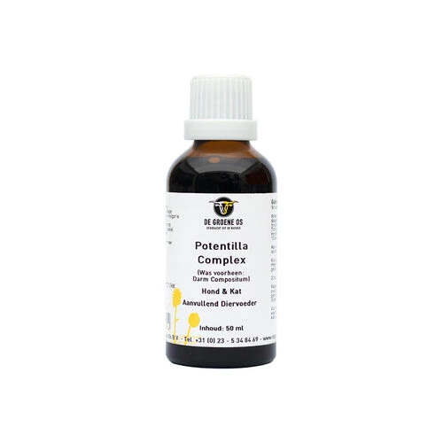 Groene Os Potentilla Complex ist ein Ergänzungsfuttermittel für Hunde und Katzen und trägt zur normalen Darmfunktion bei. Es fördert eine regelmäßige Stuhlentleerung und eine gesunde Darmfunktion und Verdauung.