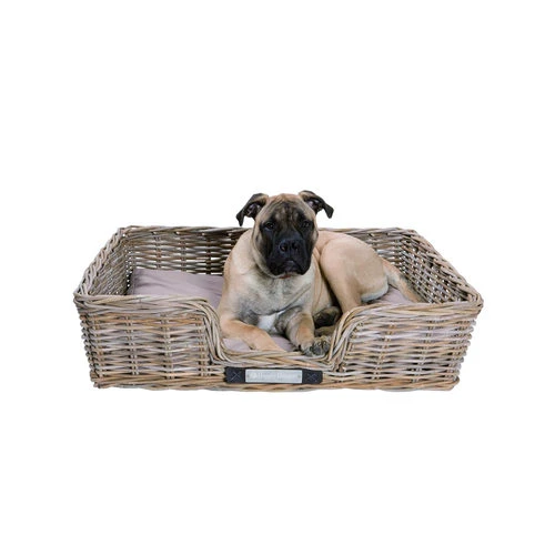 Ist ein stilvoller Hundekorb aus Weide mit einem schönen und weichen Kissen.