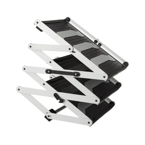 Wenn Sie Ihren Hund oft mit ins Auto nehmen oder wenn er seine Gelenke aus großen Höhen oft belasten muss, dann ist die Klapptreppe von Trixie eine gute Lösung. Die Treppe kann leicht ausgeklappt werden, um eine Treppe zu bilden. Diese Funktion erleichtert das Zusammenklappen und die Treppe kann problemlos am Griff getragen werden. Durch die rutschfeste Schicht rutscht Ihr Hund nicht so leicht. Die Treppe besteht aus Aluminium und Kunststoff und ist leicht zu reinigen.